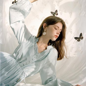 Elegant French Pastoral Long-Sleeved Dress for Women