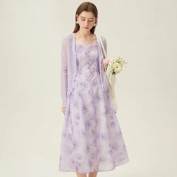 Elegant Summer Floral Embroidery Lantern Sleeve Dress