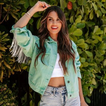 Chic Autumn Short Black Denim Jacket with Turn-down Collar