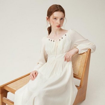 Elegant French Pastoral Long-Sleeved Dress for Women