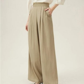 Elegant High-Waist Pleated Trousers with Pockets for Women