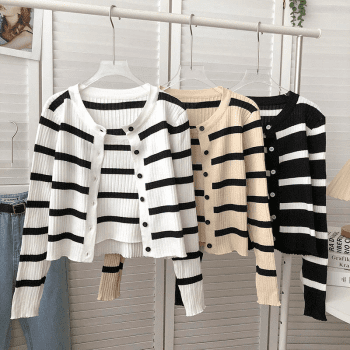 Women’s Striped Long Sleeved Cardigan and Vest Set